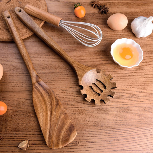 Our Scandinavian-designed utensils are crafted from natural teak and treated with olive oil for extra durability.
